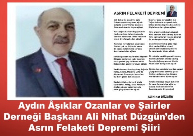 Aydın'ın kültürel değerlerini ve ozanlık geleneğini temsil eden logodaki bağlama simgeleriyle uyumlu bir şekilde, bu acıyı söz ve mısralarla tarihe not düşen Ali Nihat Düzgün'ün o sarsıcı şiiri: