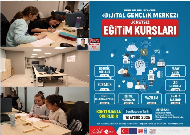 Başkan Yetişkin’in öncülüğünde ücretsiz olarak düzenlenen Dijital Gençlik Merkezi Eğitim Kursları için başvurular başladı. Robotik kodlamadan yapay zekaya, grafik tasarımdan 3D modellemeye kadar geniş bir yelpazede sunulan eğitim programı, gençlerin dijital dünyanın kapılarını aralamasını hedefliyor. Başkan Yetişkin, “Bugünün gençlerine yatırım yapmak, Efeler’in yarınlarına yatırım yapmaktır.” sözleriyle projenin önemini vurguladı.