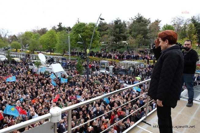 İYİ Parti Genel Başkanı Akşener, Zafer Meydanında düzenlenen programda seçim otobüsünün üzerinden vatandaşlara seslendi.