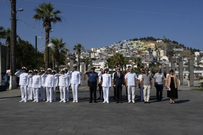 Kuşadası’nda 1 Temmuz Denizcilik ve Kabotaj Bayramı’nın 97. yılı kutlamaları kapsamında, Atatürk Anıtı’nda tören düzenlendi. Törene, Kuşadası Liman Başkan Vekili Önder Eyigün, Kuşadası Sahil Güvenlik Karakol Komutanı Binbaşı Özgür Lafçı, Aydın Büyükşehir Belediyesi Denizcilik Daire Başkanı Barış Tarım, Kuşadası Emniyet Müdür Yardımcısı Rasim Demirelli ve çeşitli sivil toplum kuruluşlarının temsilcileri katıldı. Kuşadası Liman Başkan Vekili Önder Eyigün tarafından Atatürk Anıtı'na çelenk konulmasıyla başlayan tören, saygı duruşu ve İstiklal Marşı ile devam etti. Daha sonra Kuşadası Kaymakamı Sadettin Yücel ve beraberindeki protokol üyeleri Ege Port Limanı’ndan römorkörle açılarak denize şehitlerin anısına sembolik olarak çiçek bıraktı. Renkli görüntülere sahne olan etkinlikler, gün boyunca düzenlenecek olan sergilerin yanı sıra Güvercinada’da gerçekleşecek olan yarışma ve gösteriler ile sürecek.