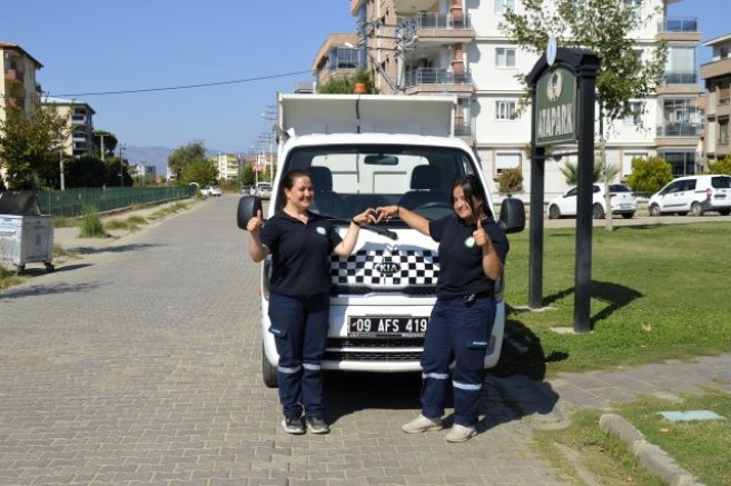 çalışanlarla ilçede bir ilki gerçekleştiren Çine Belediyesi’nde son olarak iki kadın şoför daha iş başı
