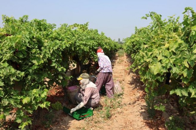 Ege Yaş Sebze ve Meyve İhracatçıları Birliği tarafından Alaşehir'de hasadı yapılan çekirdeksiz Sultaniye üzüm için üretici İsmail Özer'e ait bağda kesim töreni düzenledi.