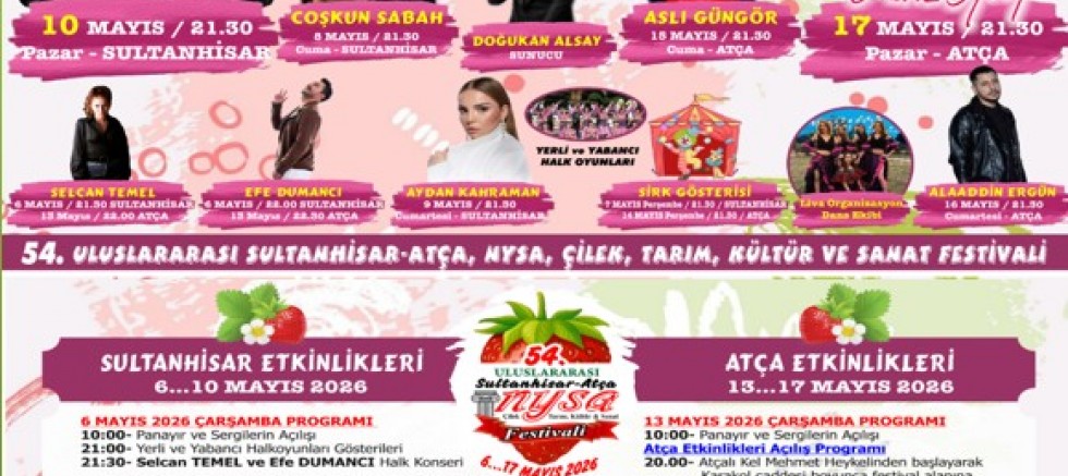"Tarihin gizeminin çileğin kokusuyla buluştuğu cennet ilçemiz Sultanhisar’da, bu yıl 54. süne imza atacağımız uluslararası festivalimize katılımınız bizleri onurlandıracaktır."