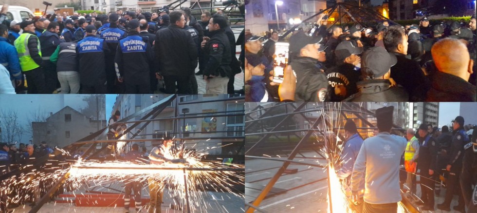 Müdahale sırasında ortamın gerildiği, Kuşadası Belediyesi bürokratlarının baskı altına alındığı, sözlü hakaretler ve fiziksel temasa varan davranışların yaşandığı görüldü. Kamu gücü kullanılarak oluşturulan bu fiili durum, “hukuk” kavramının tamamen devre dışı bırakıldığını gösterdi.